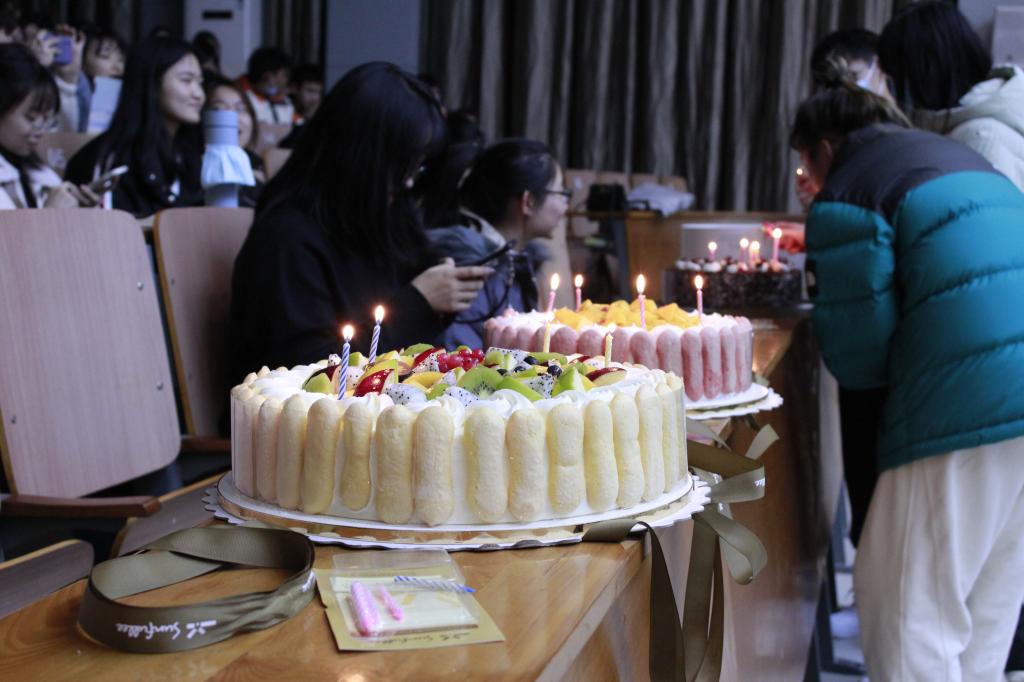 作为小寿星中的一员,社会2001班周东琴表示:“集体过生日让我超级感动,其实自己很久没过过生日了,被人放在心上感觉让我十分开心!被点名上台,同学们手机亮起星星点点的光,收到祝福小卡片,吹蜡烛,许愿,和同学们一起分蛋糕……昨天晚上发生的故事,应该是我这个月最开心的事了,我永远爱文法学院!”作为团支书,广告2003班张垚鑫参与了生日会的策划,但是生日会还是带给了她许多的惊喜:“艾老师竟然还做出了班主任祝福语的视频,这是瞒着所有人的惊喜,本以为这就是全部了,结果今晚的重磅炸弹还在后面。视频中我们教官第一个出来的时,轰的一下,我的情绪一下子从天灵盖窜到鼻头,瞬间泪目。”