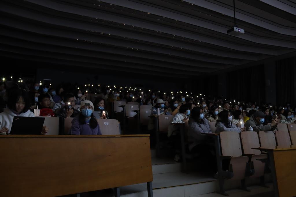 大会最后,艾老师为20级同学准备了惊喜——集体生日会。在12月过生日的同学上台接受大家的祝福,并在艾老师的组织下进行了集体唱生日快乐歌、许愿和吹蜡烛等环节。“路过山水万程,祝大家与温柔相逢”、“希望你们能够继续兴致盎然地与世界交手,一直走在充满香花的道路上”、“都是在同一起跑线上,为什么不让自己变得更加优秀一些呢?”“希望你们能够德智体美劳全面发展,让自己在大学的舞台上发光发热”、“大学是社会的跳板,今天的努力决定明天的高度。愿你们以梦为马,不负韶华,谱写青春无悔华章”、“要以积极的态度面对生活,功成名就不是目的,让自己快乐才有意义”、“每当感到迷茫,不想继续奋斗之时,也不要忘了自信的微笑”、“愿小天使们都成长为国之栋梁”……班主任老师和教官们的祝福和期望在屏幕上一一呈现。字里行间,满是柔情。同学们虽然离家千里,依旧感受到了家的温馨与浓浓的爱意。