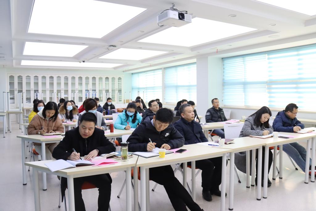 行政教工党支部书记孙站成汇报支部将党建工作与业务工作紧密结合,将理论学习与时事政治紧密结合,将延续传统与实践创新紧密结合的工作思路和具体内容,对未来进一步加强支部班子建设,进一步落实支部制度进行了明确规划。