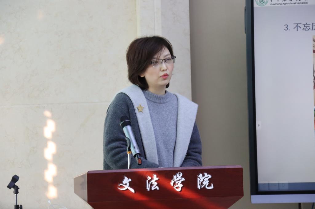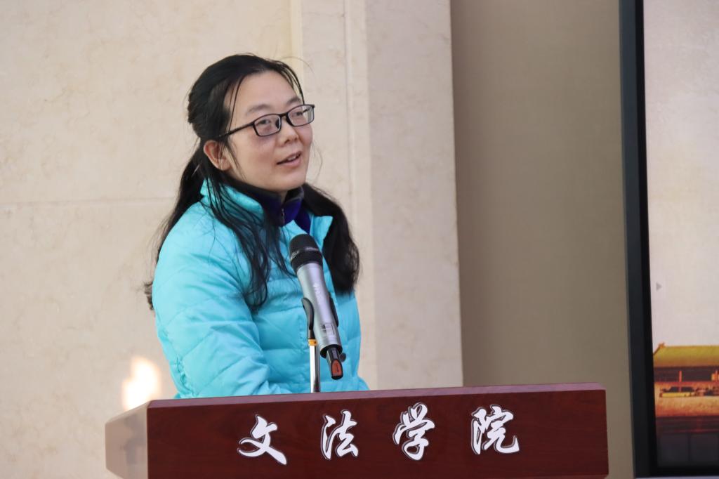 国学党支部副书记袁琳阐述支部党员依托课程融入思政引领的做法,将“生命的思考与叩问”融入到文学教育与美学教育中,积极打造文化育人品牌活动,以“启迪、静心、自强”为主题的国学夏令营和以“生命的礼赞”为主题的“金秋雅韵”诗朗诵活动发挥了良好的文化涵育功能。