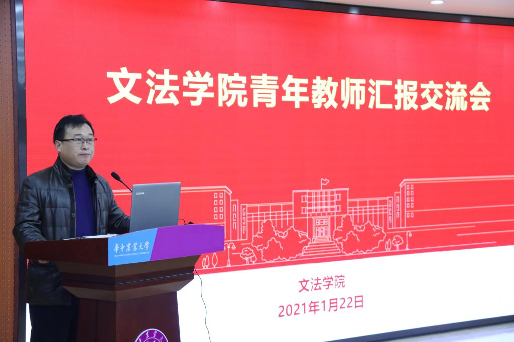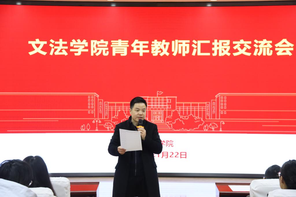 1月22日下午,学院在人文楼M501召开青年教师汇报交流会,40周岁以下青年教师做汇报交流,专家组为青年教师问诊把脉,全院教职工参加会议。会议由学院院长田北海主持。