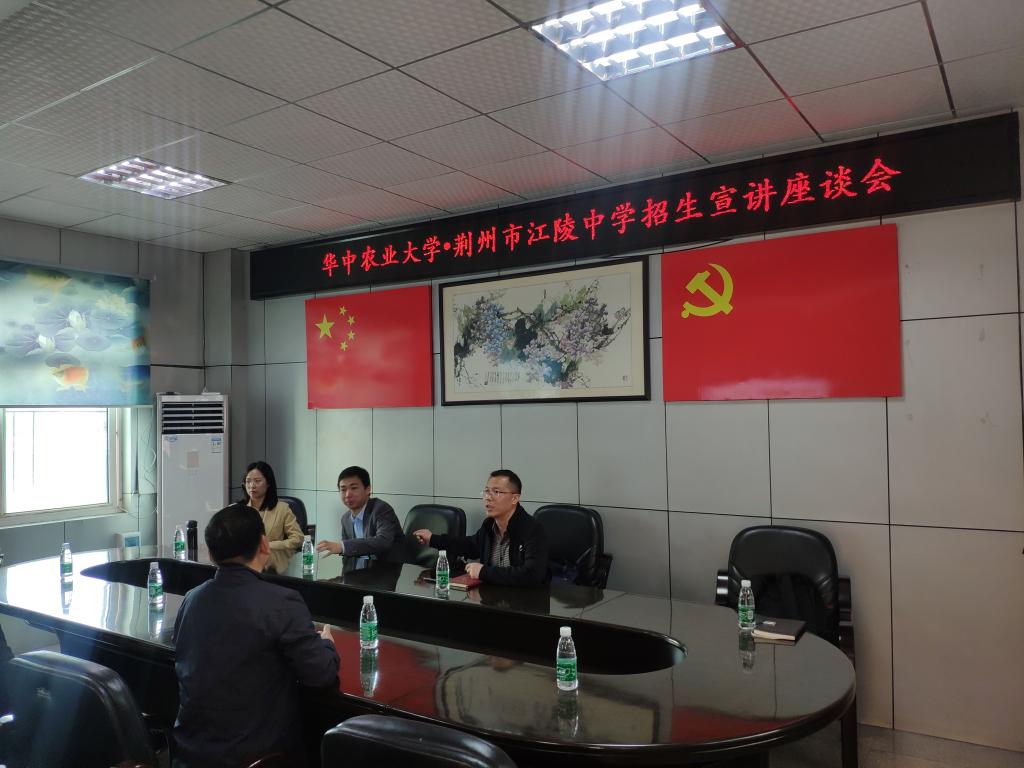 周治瑜一行先后与监利一中、监利实验高中、监利翔宇中学、江陵中学、荆州中学、沙市中学、洪湖一中的高中负责人及高三年级班主任进行交流。在座谈会上,本科生院招生办公室郑泽涛向当地老师简要介绍了学校的办学历史、校园环境、办学规模等情况,并展示了我校师资队伍、学科特色、科技实力、校园文化以及国际交流等内容。此外,郑泽涛结合学校在湖北和荆州地区近三年的录取数据,就学校在读学生及校友的学习生活及发展情况进行了交流。