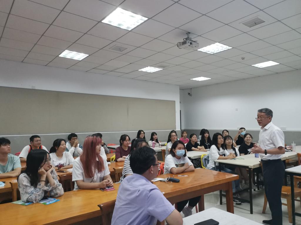 听完社会学2103班的同学们的自我介绍后,廖济忠书记向同学们提出了四点期待:一,生活有规律,同学们应在正青春时散发该有的活力;二是术业有专攻,做好学生的本职工作;三是状态有激情,真正的大学生应当是奋勇向前的;四是人生有境界,在大学努力提升自己。