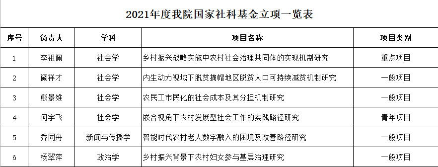 近日,全国哲学社会科学工作办公室公布了2021年国家社科基金年度项目和青年项目立项结果,我校共有16个项目获得资助,威尼斯官网占有6项,其中唯一1项重点项目由威尼斯官网李祖佩老师贡献。