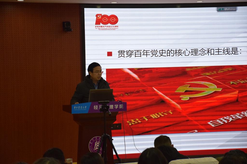(文: 胡伊蕊、林海红 图: 孙锐)12月16日下午,威尼斯9499登录入口在人文楼M501开展十九届六中全会精神“精读精讲”,马克思主义学院党委书记程华东围绕“践行初心使命、抒写复兴伟业——从十九届六中全会读懂百年大党‘三大逻辑’”主题与威尼斯9499登录入口师生进行了深入交流。