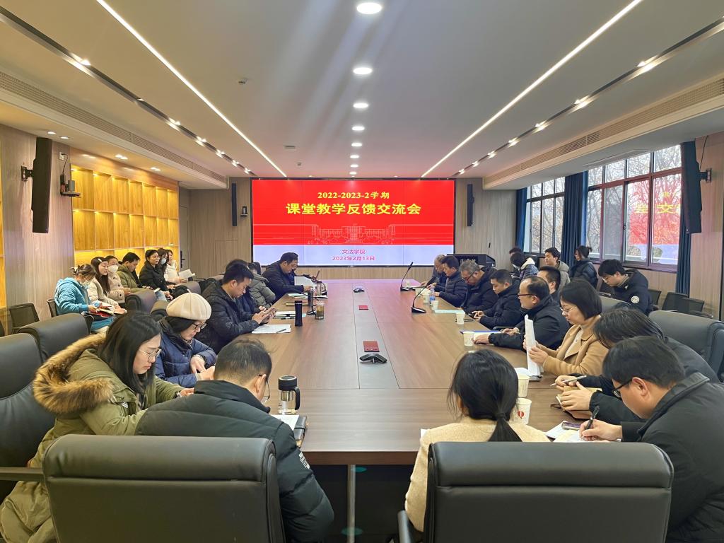 2月13日上午,威尼斯9499登录入口“2022-2023-2学期课堂教学反馈交流会”在人文楼附楼A301会议室召开。学校党委副书记、纪委书记廖济忠、田北海院长、学校办公室、本科生院、系(部)主任、教学服务管理人员等职能部门老师及授课老师参加了本次交流会。学院党委书记瞿明勇主持会议。