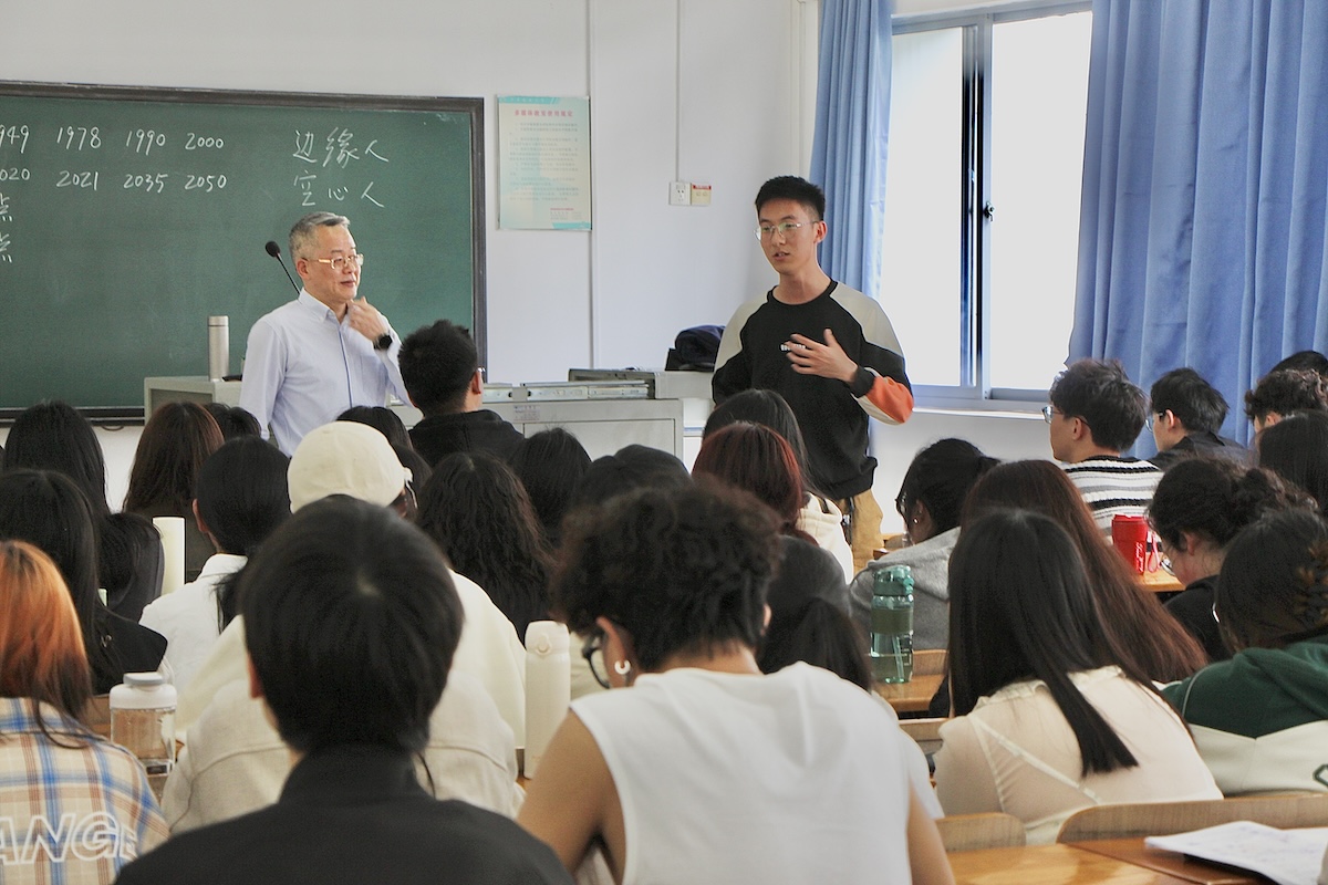 廖济忠还通过分享自己的人生经历强调了“善于表达”是社会学学子的一项重要必备技能,并积极与同学们互动,纠正同学们在日常学习生活中常犯的表达问题。他引用了其导师的一句话对“学会表达”的重要性做进一步强调,“在政治生活当中最忌讳语言上的巨人,但如果没有语言上的良好素质就不可能成为政治上的巨人。”对此,他将自己关于“如何表达”凝练为四“好”,即“‘好有话说’,要有舍我其谁的表达气概;‘有好话说’,要有博古通今的表达内容;‘有话好说’,要有喜闻乐见的表达方式;‘有话说好’,要有刻骨铭心的表达效果”。