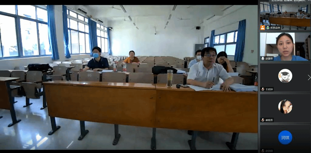 为保证答辩质量与效果,学院积极搭建答辩平台,学院会议室配备了音箱、麦克风、摄像头等设备,保证了部分答辩组教师能集中到校进行答辩。学院制定了答辩方案,召开了答辩秘书专题会议。正式答辩前1-2天,各答辩组均进行了预答辩演练,对可能出现的问题及时进行了指导。为了营造仪式感,学院统一制作答辩虚拟横幅与背景。