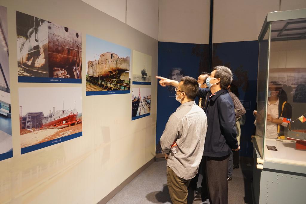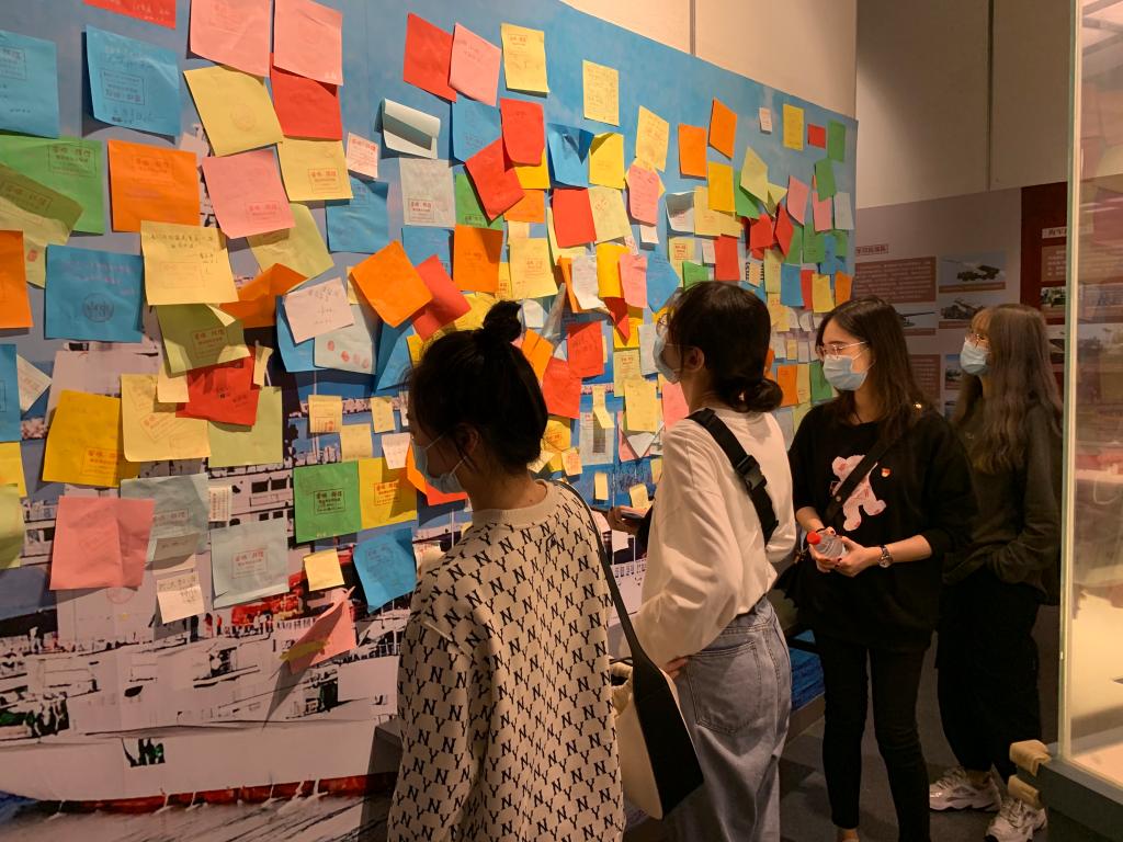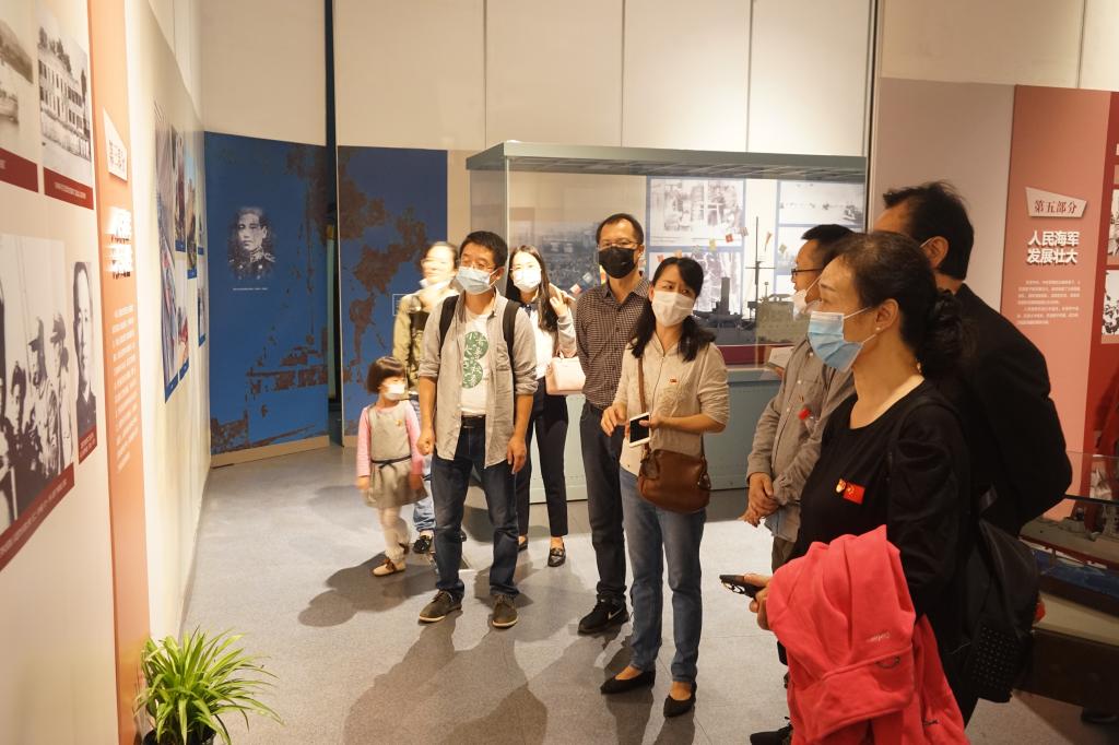 馆内正在展览的是《苦难·辉煌——舰证中国海军百年展》特展。从甲午海战的屈辱,到人民海军的诞生,再到今天发展壮大、走向深蓝,展览讲述了我国海防事业的历史性巨变。老师和同学们不时驻足于陈列品前,交流彼此的心得与感悟。