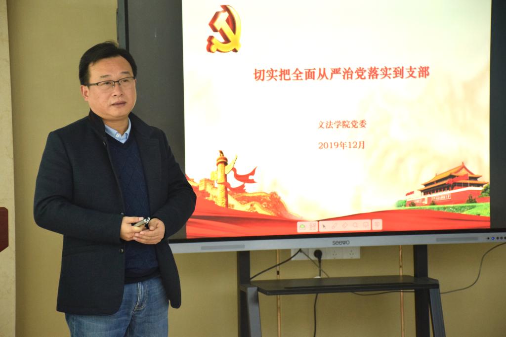 瞿明勇逐一剖析了学校党委第三巡察组在巡察反馈中提出的党支部建设存在的“三会一课”记录不全、党支部活动形式单一、党员之间交流偏少等问题,提出落实支部工作考核制度、加强师生党支部“结对”开展活动、大学生党总支成员定期下支部督察学生支部建设等建议措施。他提出我们要牢固树立党的一切工作到支部的鲜明导向,推进全面从严治党向党支部延伸,把思想政治工作落到支部,把从严教育管理党员落到支部,把师生工作落到支部。